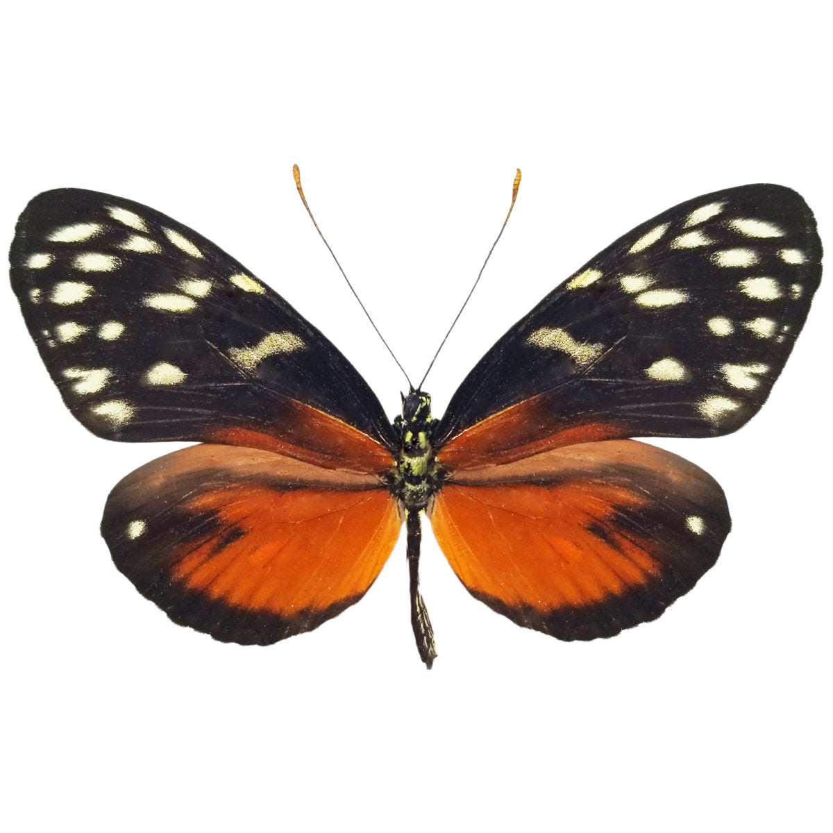 A swift flier, this Heliconius species is a forest dweller from South America. Its forewings have scattered cream patterned patches and a burst of orange coloration from its abdomen outwards onto its hidwings. A new species for us, make sure to collect this beautiful butterfly while we have them!