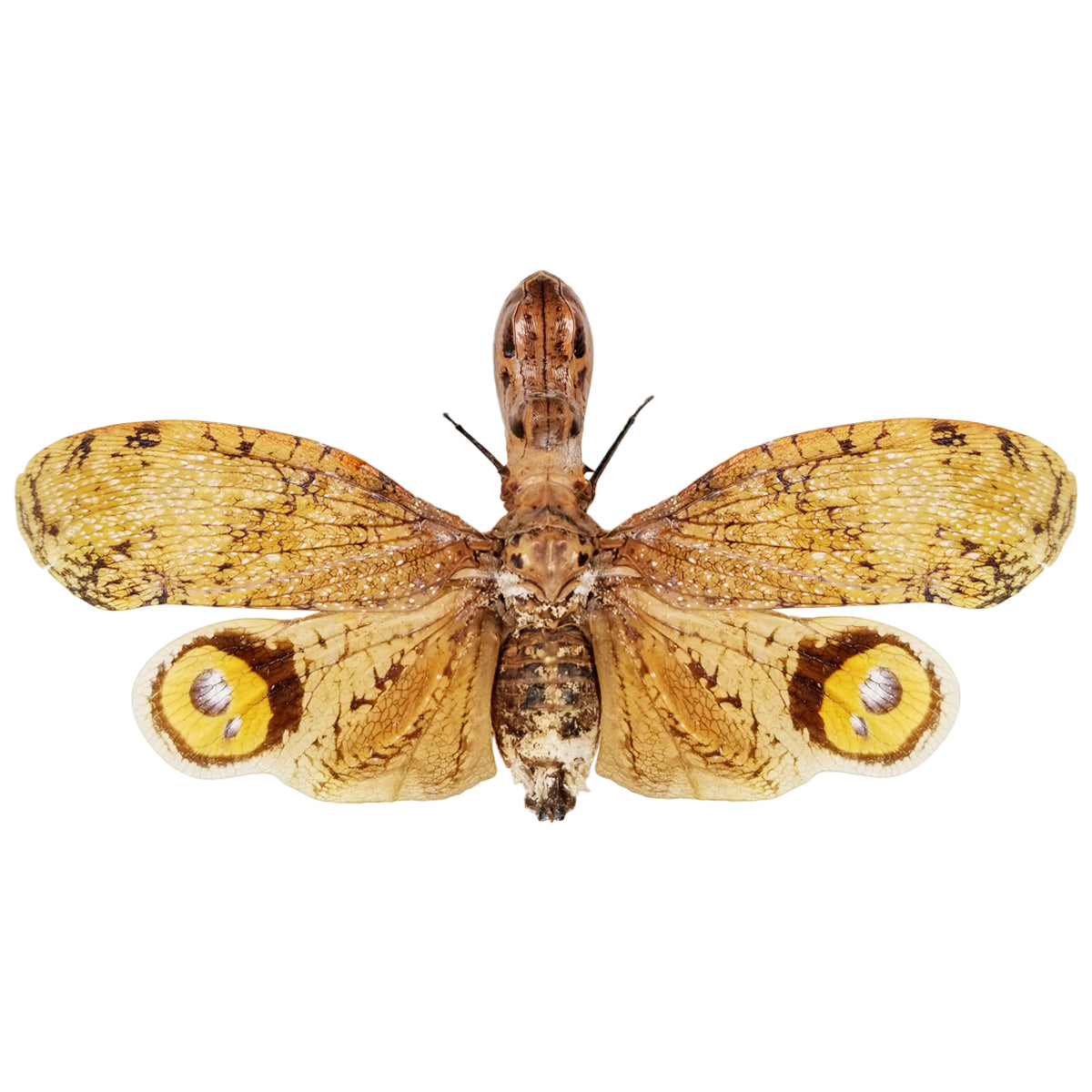 The Peanut Headed Lanternfly is a returning favorite! This guy has false eyes on its hindwing that help it deceive predators, similar to the Owl butterfly. They feed on plant saps and will knock their heads against a tree bark that signals out to potential mates it attracts. A master of camouflage as well! Don't miss out on these while we have them in stock!