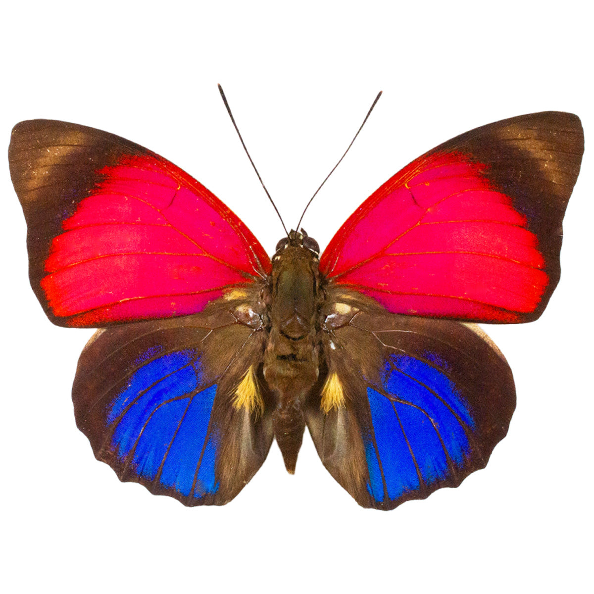 CRTBC-ACB1: A beautiful scarlet red patched, blue hindwing nymph butterfly from South America. The undersides of this Agrias, like many others, is stellar patterned , forewings are super washed in color compared to the reverse viewing. The beauties are highly sought after by collectors because of their vibrant and stunning colors! You will receive one of these exact specimens spread as shown from the TBC House Collection.