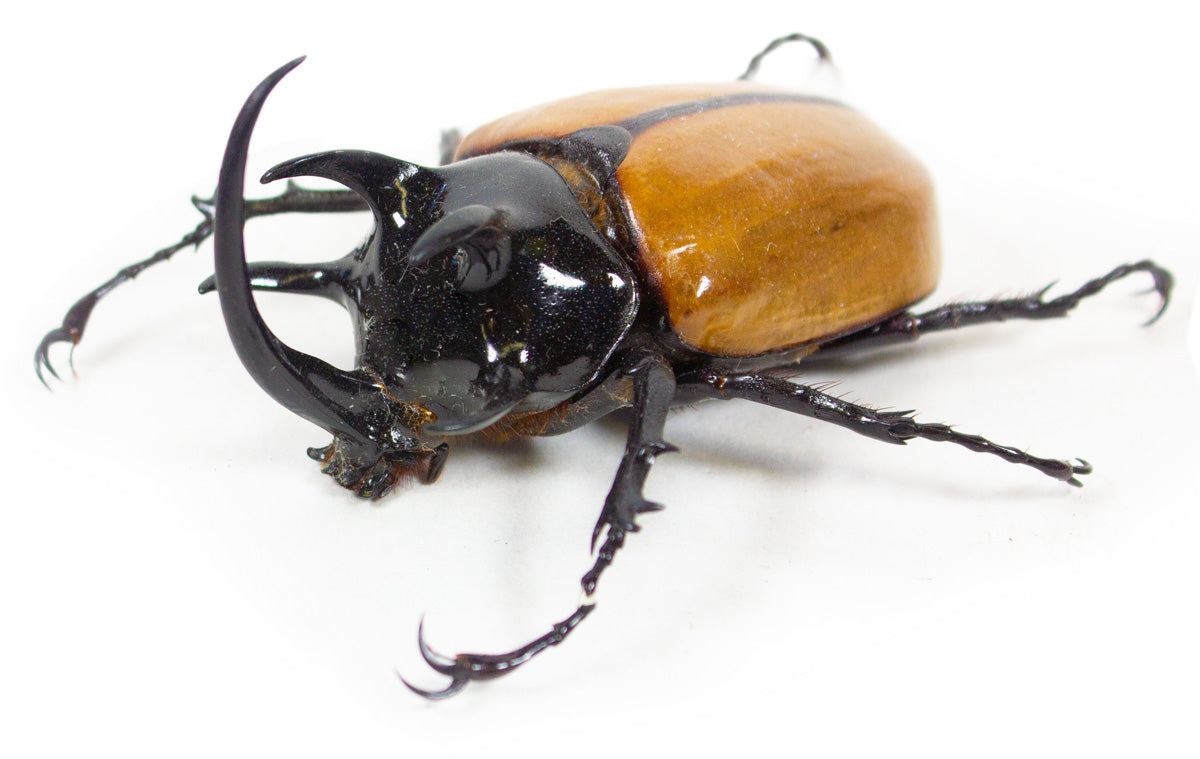 A formidable-looking beetle, he has 5 sharp horns on his head! wonderful in artwork, these look almost extra-terrestrial!