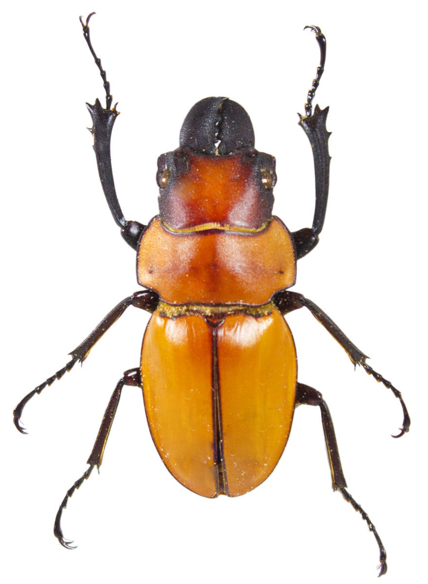 The Sommeri Stag, Odontolobis sommeri, is a reddish-orange brown beetle from Malaysia. They have mandibles that resemble tips of bolt cutters, and although this is a smaller variation of this species, their pincers help them defend themselves from any danger. A decent handful of these available, a lovely addition to any collection!